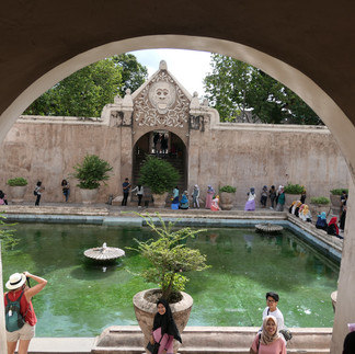 Am Samstag besuchen wir den Sultanspalast, Kratan und den Wassertempel. Wir nehmen die Ritschka und erkunden die alte Badeanlage des Sultans. Es gibt unterirdische Gänge zum naheliegenden Ruinengebäude und zur unterirdischen Moschee. Die ganze Anlage war früher riesig und die Fragmente sind heute mit den Gebäuden der Einheimischen verwoben. Auf dem Heimweg sehen wir einen Ansturm auf einen Laden. Alle wollen aufs Weekend von der lokalen Bäckerei leckere Süssigkeiten. Neben der Verkaufsstelle ist die offene Bäckerei mit ca. 20 Mitarbeiter. Wir kaufen zwei Packungen.
