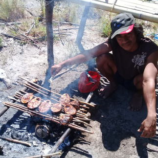 Ein Meerestier, eventuell eine Qualle "beisst" Tamara in das Bein. Das passiere sehr selten wird uns versichert. Es entsteht eine Rötung und es schmerzt sehr. Unser Host hat ein besonders aufbereitetes Öl und Erfahrung über mehrere Generationen mit Hautverletzungen. Darum lässt er uns von der einheimischen Medizin profitieren. Die Schmerzlinderung setzt unmittelbar ein und auch die Rötungen verschwinden allmählich.