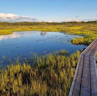 Die «golden hour» zeichnet sich ab und nachdem der Tag regnerisch gestartet hat, kommt jetzt die Sonne. Wie fahren darum spontan in das nahegelegene Moor Soomaa Nationalpark und werden auf unserem einstündigen Moorspaziergang mit einzigartigen Naturbildern belohnt. Auch hier im Moor hat es eine Familie, die im Moorsee das kalte Nass geniesst. Wir schlafen auf einem nur 5 Minuten entfernten RMK Parkplatz wieder seeehr lange und wachen erst um 10.30 auf.