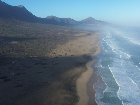Auf der Fahrt zur Playa el Salmo sehen wir in der Ferne bereits die Playa de Sotavento. Ob wir diese Lagune noch mit Sonnenlicht geniessen dürfen?