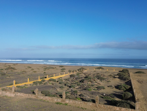 Auf dem Aussichtspunkt angekommen haben wir eine teilweise nebelverdeckte, aber trotzdem recht gute Sicht auf den 12 km unberührter Strand. Scheinbar ist die Sicht morgens generell besser, nachmittags ziehen meistens Wolken und Nebel auf.