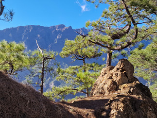 Danach laufen wir durch den Kiefernwald zum Mirador de Los Roques. Der innere Kraterrand ist steil und die Wege schmal. Die Aussicht ist immer wieder umwerfend. Wegen den Fotostopps brauchen wir sicher dreimal so lange für die gleiche Wanderstrecke.