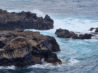 Die Nacht war ruhig und der Wellengang regelmässig. Darum stehen wir ausgeruht auf. Nach dem Frühstück, lesen wir die Bibel, beten zusammen. Dann macht Tamara Sport und ich entdecke das nähere Umfeld mit dem Fotoapparat. Ich klettere auf den Lavafelsen im Meer und geniesse von dort die Aussicht. Anschliessend schlendere ich über den Dorfstrand und sehe mir die Steine an. Als ich mit 4 Steinen in der Hand wieder zurücklaufe, meint ein Einheimischer, der soeben mit der Harpune aus dem Meer gestiegen ist, dass ich auch die anderen Steine mitnehmen soll, es hätte genug am Strand. Bin nicht sicher, ob er mein Interesse an den Steinen wirklich versteht... Ich wäre bei diesen Temperaturen auch nicht tauchen gegangen. So sind wir alle unterschiedlich. Die 4 Steine werden in meinem Geheimfach im Kofferraum versteckt.