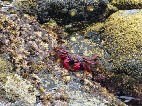 Danach steigen wir zu den natürlichen Schwimmpools den Felsen hinunter. Dort verbringen wir etwas Zeit und ich fotografiere die hübschen «Krebse» auf den Felsen.