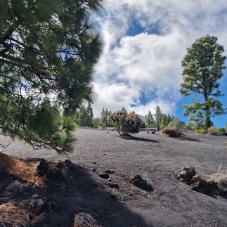 Auch hier in La Palma hat es einen Riss in der Erdkruste. Dieser Riss zieht sich vom Norden in den Süden entlang der Vulkane. Tajogaite ist der jüngste Vulkan mit einem Ausbruch im 2021. Der Ausbruch dauerte nur 3 Monate. Der Vulkan Tacande hat in dieser Region bereits über mehrere Jahre gewütet 1470-1492. Dann hat San Juan im Jahre 1949 seinen Teil dazu beigetragen, dass die Landschaft hier so aussieht. Bei den jüngsten Vulkanausbrüchen verlief die Lava bis ins Meer. Um dieses Spektakel zu sehen fahren wir zuerst zum Mirador del Tajogaite. Die Fahrt dorthin verläuft zwischen Kiefernwäldern und schwarzem Vulkansand.