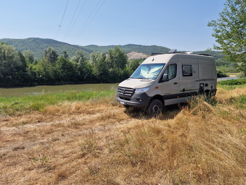Tamara hat wieder einen tollen Platz am Fluss Olt gefunden. Wir parken etwas abseits der vielen Weekend Fischer. Die Aussicht auf den Fluss ist in den Abendstunden einfach grossartig.