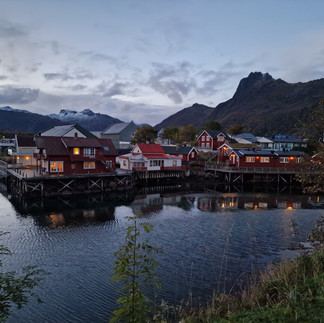 Unser Weg führt uns in das nächste Fischerdorf Kabelvag. Es regnet in Strömen und so zieht es uns in das nächste schöne Restaurant mit Holzofen. Ein warmer Tee wäre fein. Wir verlieben uns sogleich in die Location und bleiben bis zum Znacht. Wir kommen ins Gespräch mit dem Kellner, welcher uns erzählt, dass er von Afghanistan stammt und seit 8 Jahren in Norwegen wohnt und seit einigen Jahren im hohen Norden. Auf unsere Frage, wie er das Klima verträgt, meinte er, er arbeite viel und sei vor allem Drinnen, wo es warm ist... Anschliessend schlafen wir im Dorf, um am nächsten Morgen den Geburtstag von Tamara zu feiern. Es soll morgen 90% Regen geben und darum sind wir wettertechnisch auf das Schlimmste gefasst. Ich bin noch bis 23 Uhr unterwegs, weil die Sterne zu sehen sind und der Auroraalarm erfolgsversprechend ist. Ich bin jedoch um 23.15 im Bett und ich höre erst in Henningsvær am nächsten Abend, dass die Nordlichter um 23.30 da waren. Na ja, dafür bin ich ausgeruht für den Geburtstag von Tamara.