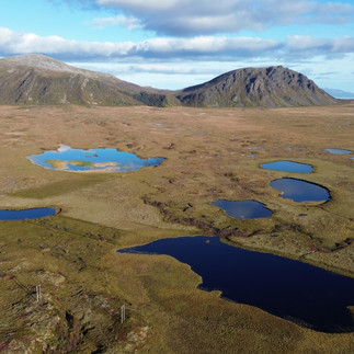Die Wanderung führt uns in eine traumhafte Landschaft und ich lasse die Drohne fliegen. Als wir die Drohnenaufnahme sehen, staunen wir nochmals über den imposanten Berg Matind mit dem steilen Aufstieg rechts und der Aussichtskuppe links. (Tamara: Der Abstieg war für mich mehr als grenzwertig und ohne die Hilfe von Walter hätte ich es niemals runtergeschafft... ).